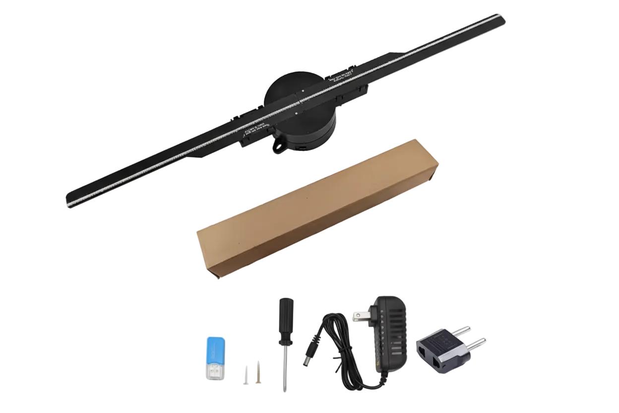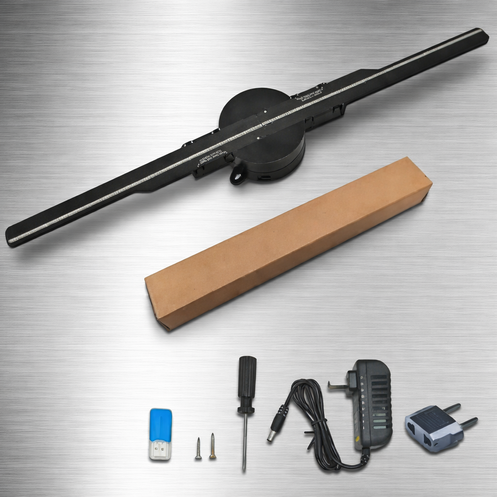Powered by 224 high-brightness LEDs, the display uses persistence-of-vision technology to create smooth floating visuals. A 2000 × 224 light mapping system, 176° viewing angle, and 1250 RPM projection engine deliver crisp holographic images suspended in mid-air.