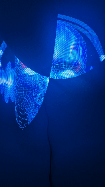 As the blades spin, hundreds of LEDs map each frame in microseconds. Your eyes naturally blend these rapid light patterns together — creating a dimensional visual that feels suspended in space.